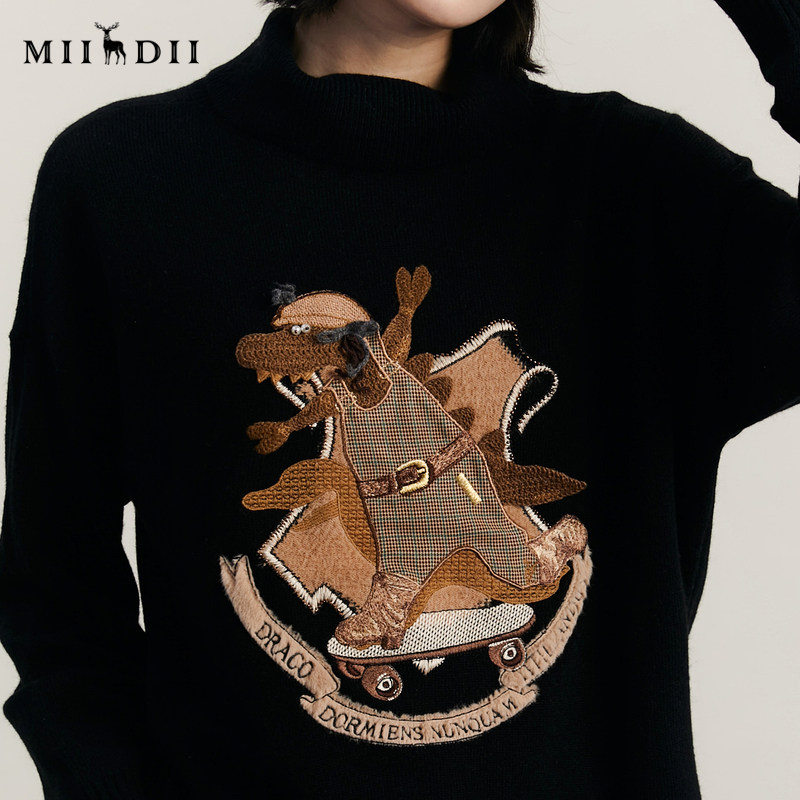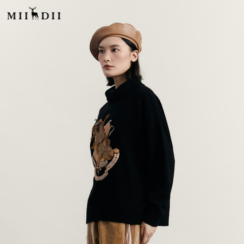 针织打底衫 品牌高级感羊毛衫 女半高领宽松毛衣秋冬加厚羊绒长袖