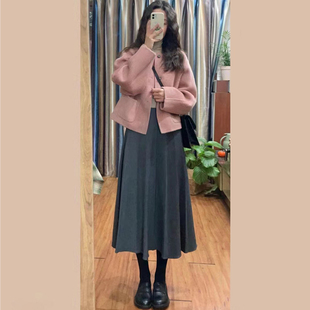 慵懒风双面羊毛大衣女中长款 灰色毛呢外套高级感A
