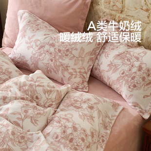 水星家纺牛奶绒四件套暖绒套件抗静电被套床单秋冬保暖法兰绒床品