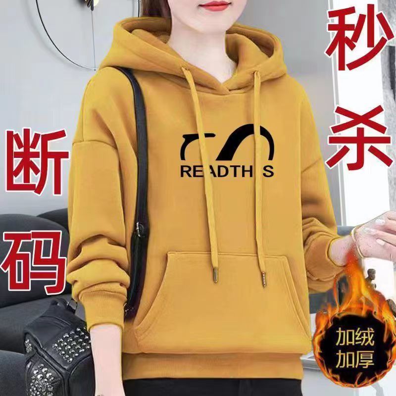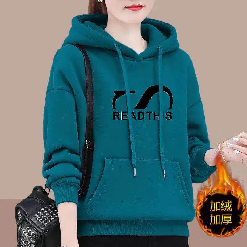 保暖衫 印花秋冬款 宽松外套 新款 加绒加厚洋气减龄连帽卫衣女妈妈装