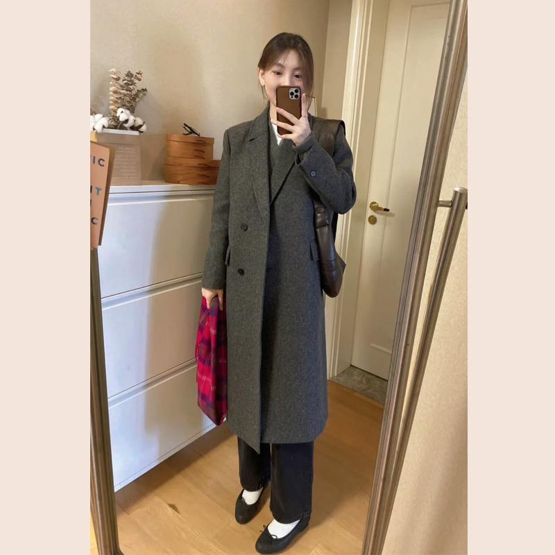 赫本风毛呢外套 韩版 高级感灰色小个子呢子大衣女中长款 2023秋冬季