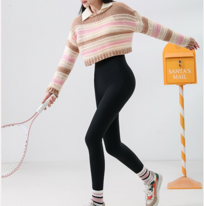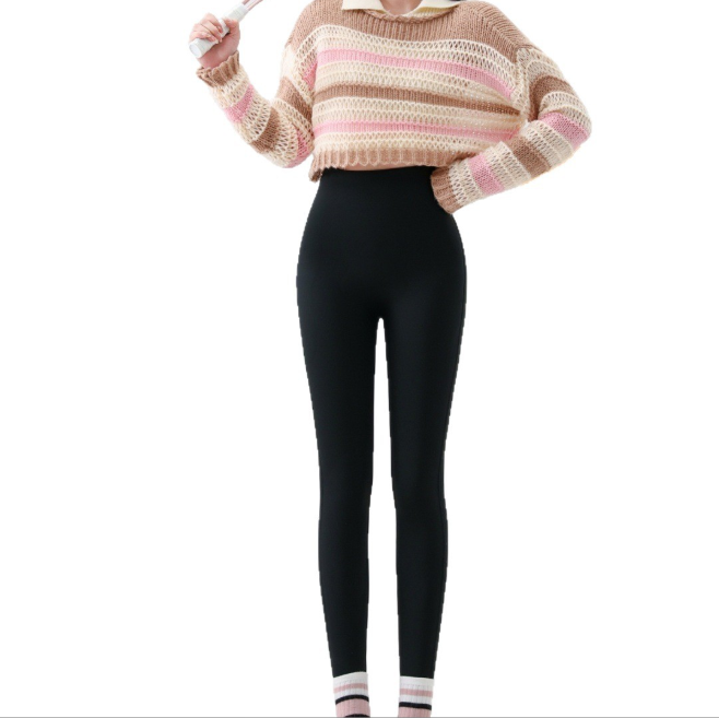 完美记忆打底裤 袜竖条纹 冬女深灰色外穿压力瘦腿加厚黑色加绒连裤