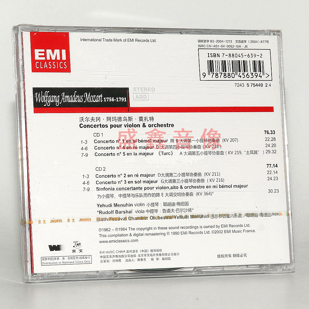 5小提琴协奏曲全集耶胡迪·梅纽因 CD碟片古典音乐 莫扎特 正版