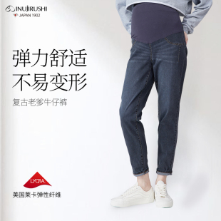 孕期宽松小脚外穿裤 犬印孕妇春夏季 托腹休闲裤 复古老爹裤 子 牛仔裤