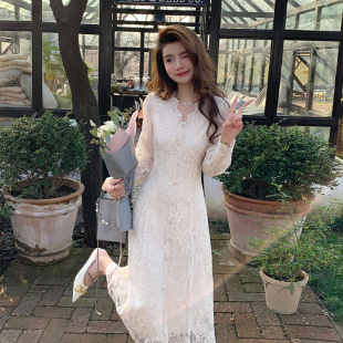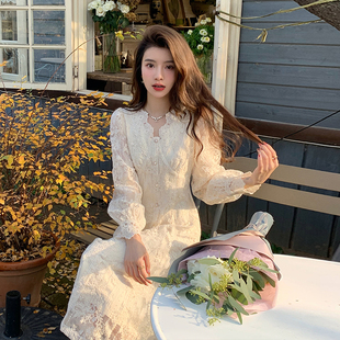 复古重工蕾丝v领连衣裙麂皮鱼骨腰封套装 法式 白马公主 LaceMade