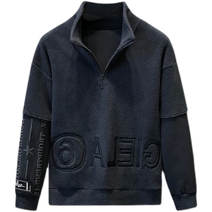 佐丹奴抓绒卫衣男秋冬新款 半拉链上衣男01025782 摇粒绒立领插肩袖
