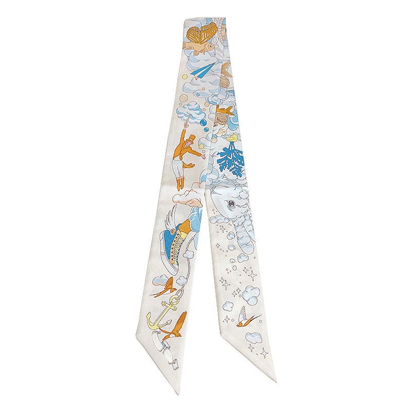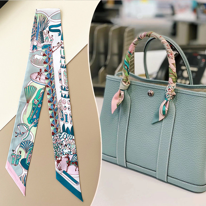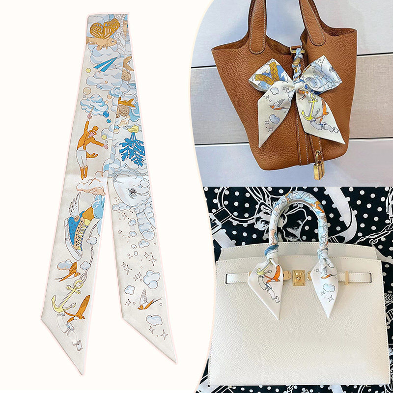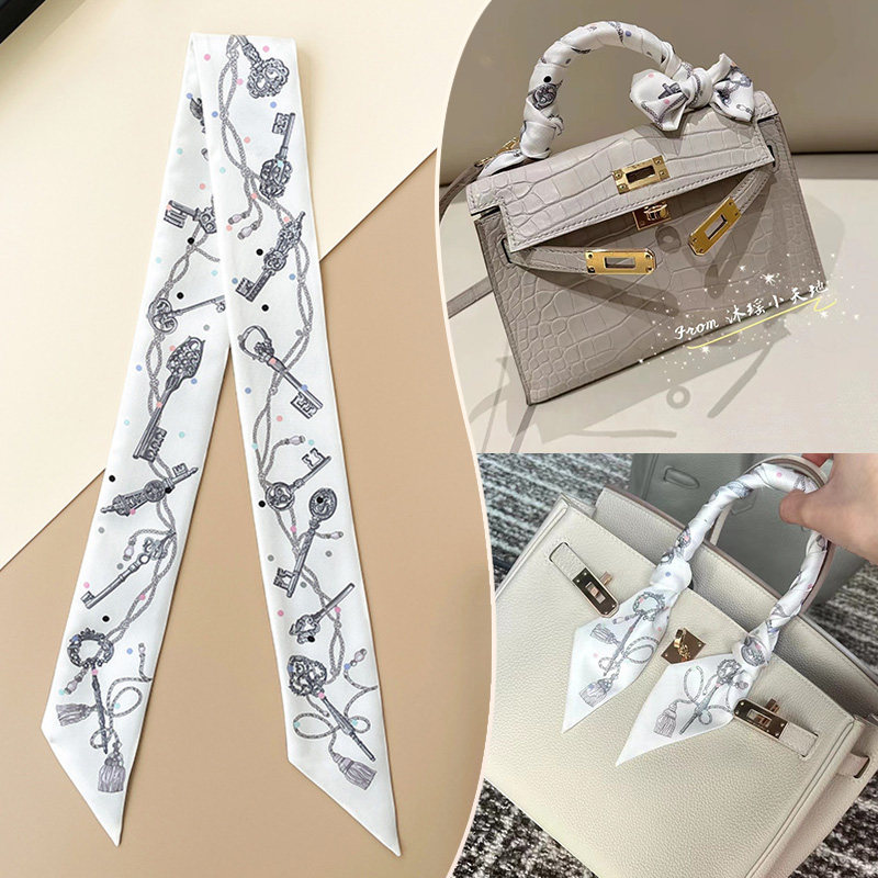 H圆点黑色钥匙twill小丝巾100%真丝绑包包丝巾桑蚕丝缠包手柄丝带