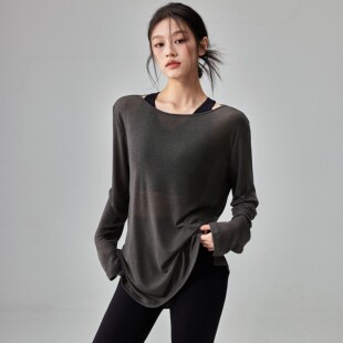 女宽松健身上衣透气速干普拉提运动t恤显瘦秋冬季 新款 瑜伽服罩衫