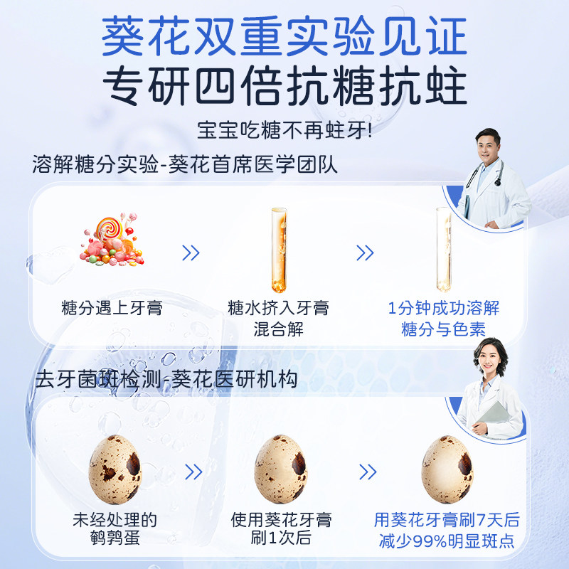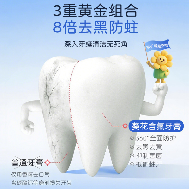 葵花儿童专用抗糖防蛀固齿含氟宝宝牙膏0到3到6岁12换牙期可吞咽