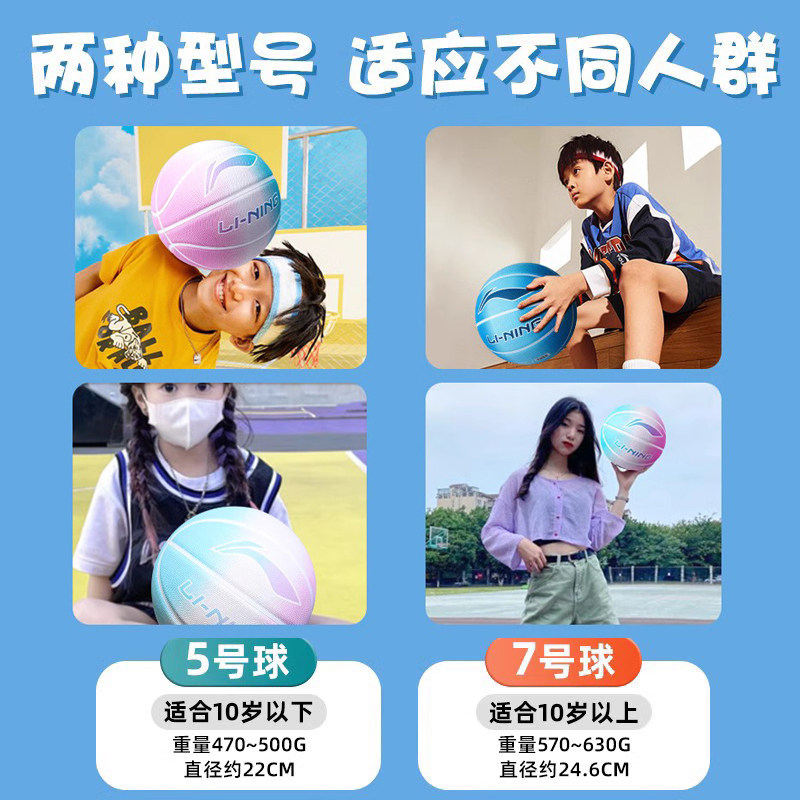 李宁初中生专用篮球官方正品 7号室内外5号小学生专业训练比赛蓝球