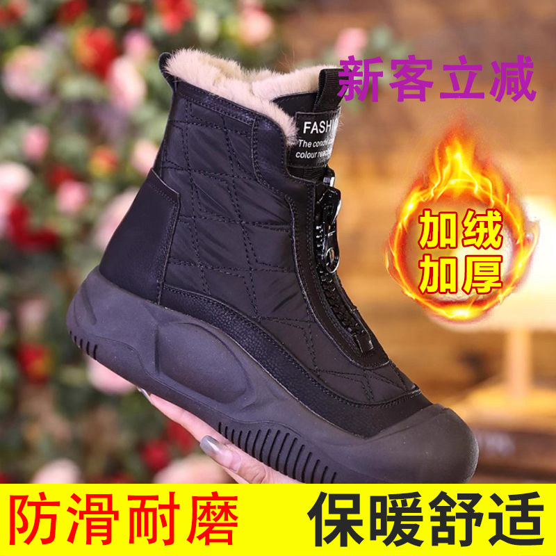 女短靴 加绒加厚厚底防水休闲保暖棉鞋 雪地靴女防滑2025新款 冬季