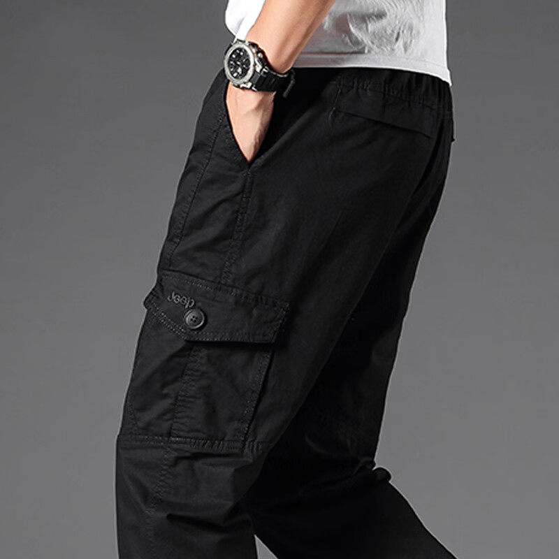 纯棉工装 松紧腰长裤 休闲裤 多口袋户外运动宽松直筒大码 男士 春秋季