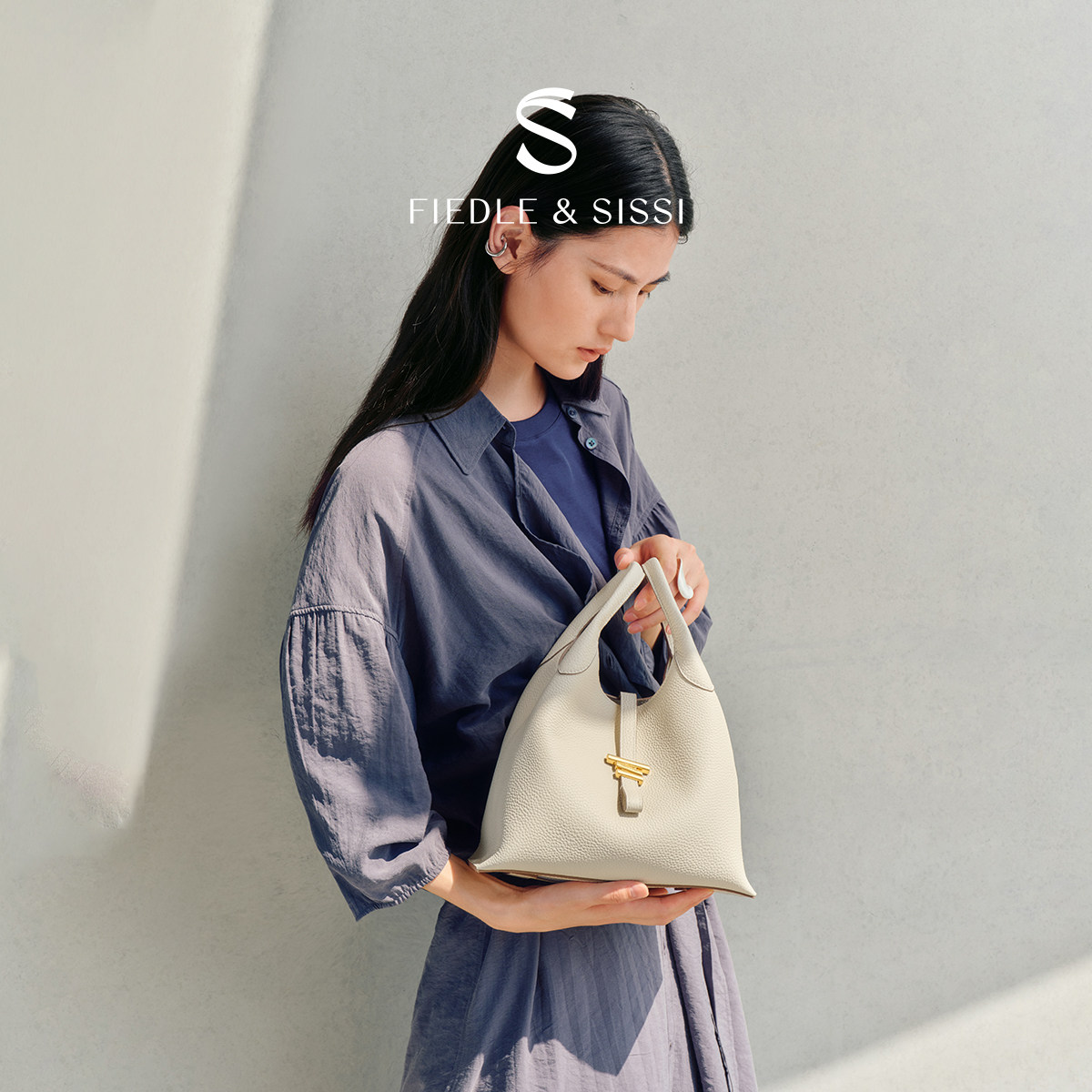 fiedlesissi 菲德茜茜风铃手拎菜篮子包女包水桶包真皮单肩手提包