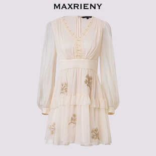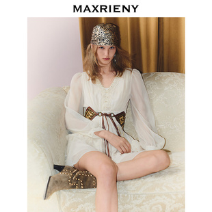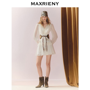 波西米亚风穿搭 MAXRIENY艺术系流浪收腰连衣裙25秋款 商场同款