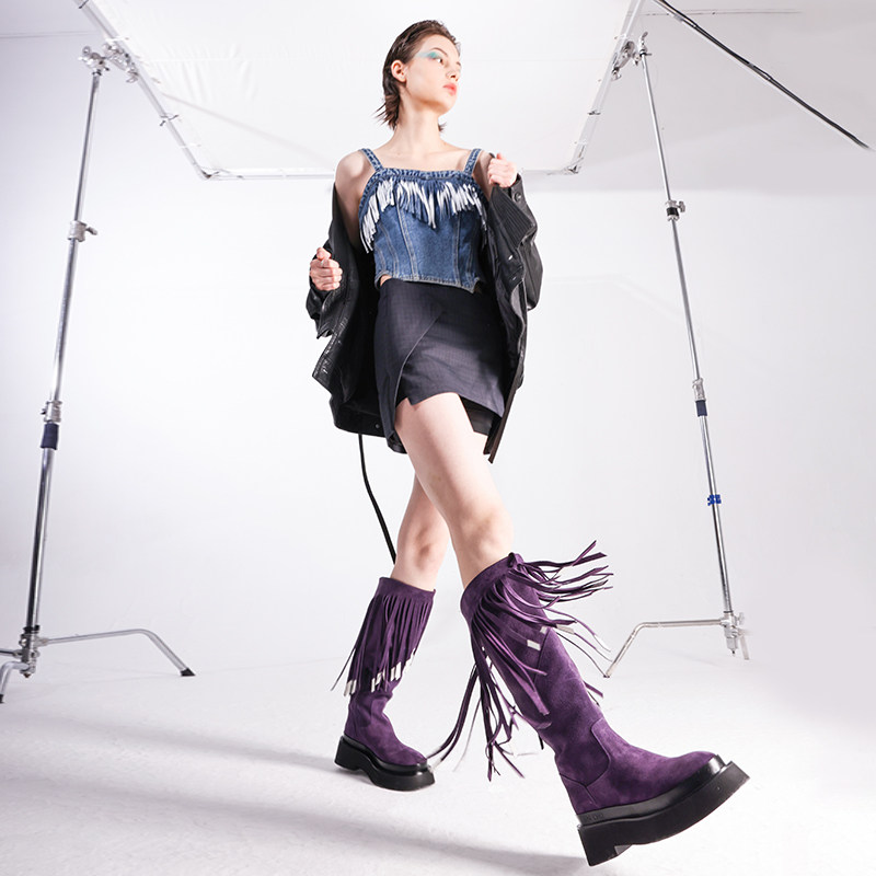 流苏长筒靴百搭经典 CHULI 26新款 洛可可 骑士靴子 SHANA