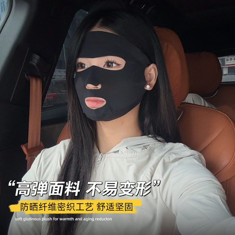 脸部防晒面罩女夏季 遮阳防紫外线全脸冰丝口罩漏口鼻可喝水脸基尼