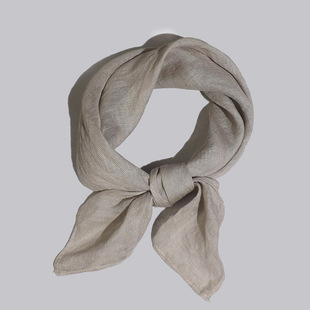 极简风亚麻围巾女夏季 进口雨露麻原色小方巾春秋文艺范小丝巾
