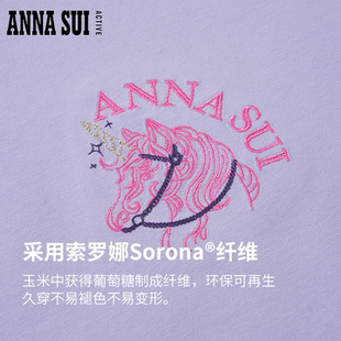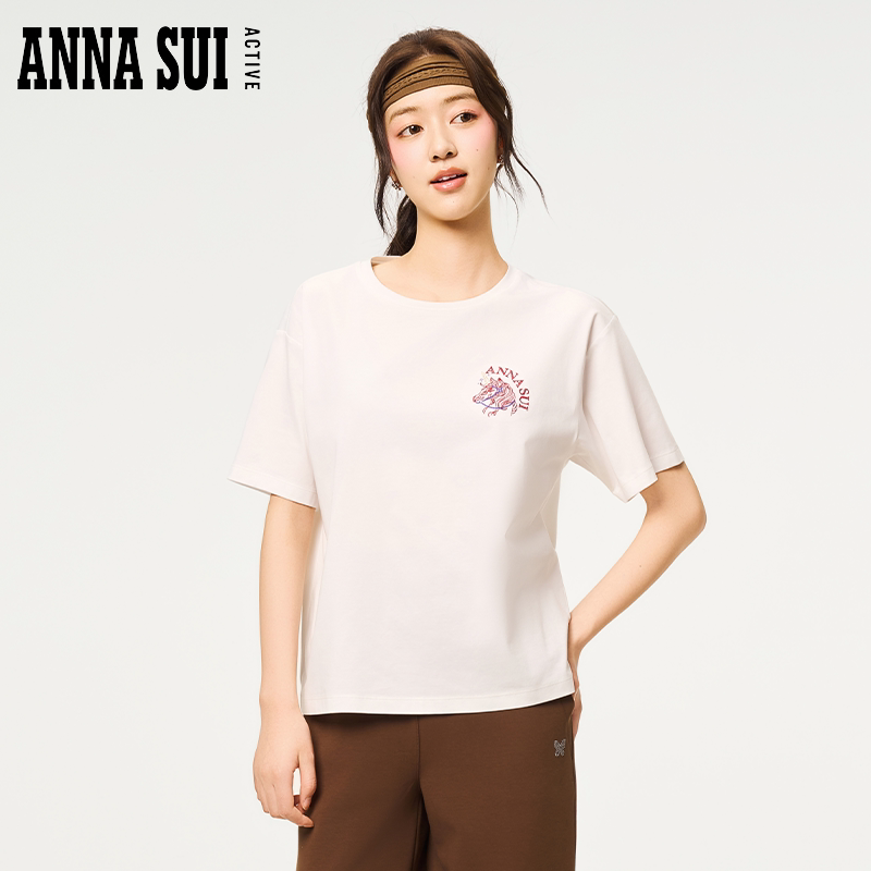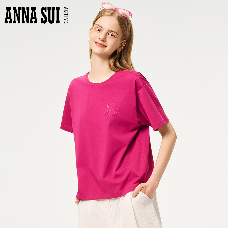 T恤圆领夏季 独角兽刺绣落肩廓形休闲宽松短袖 SUI安娜苏运动 ANNA