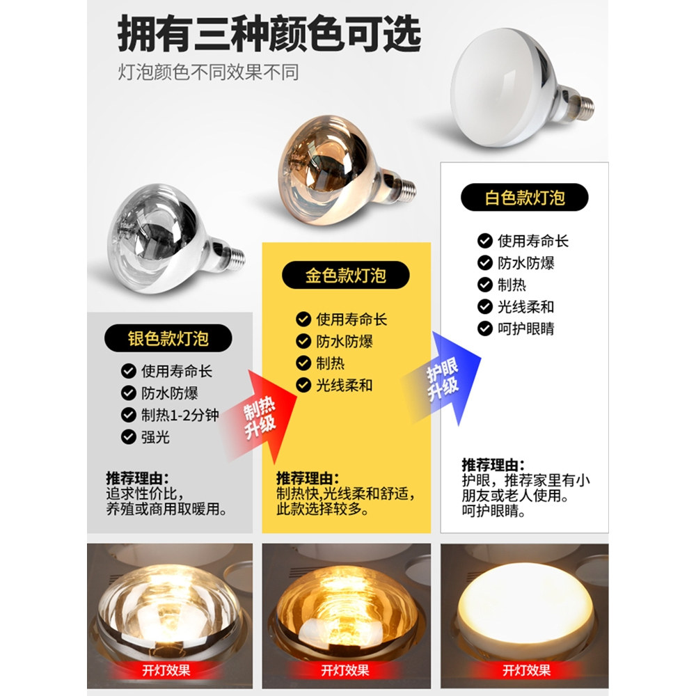 浴霸灯泡照明中间取暖灯275瓦老式 灯暖防水 卫生间浴室led壁挂式