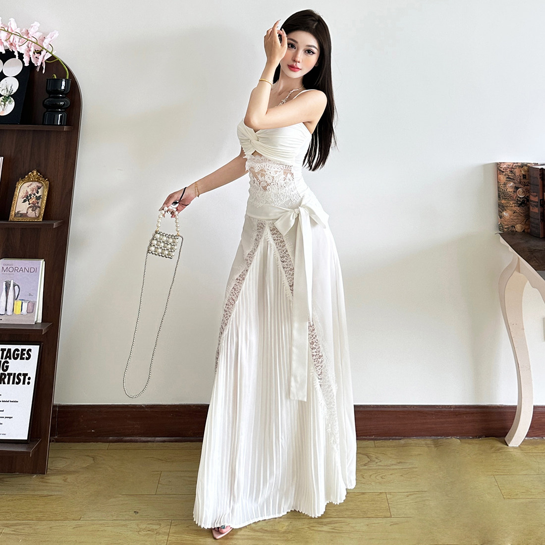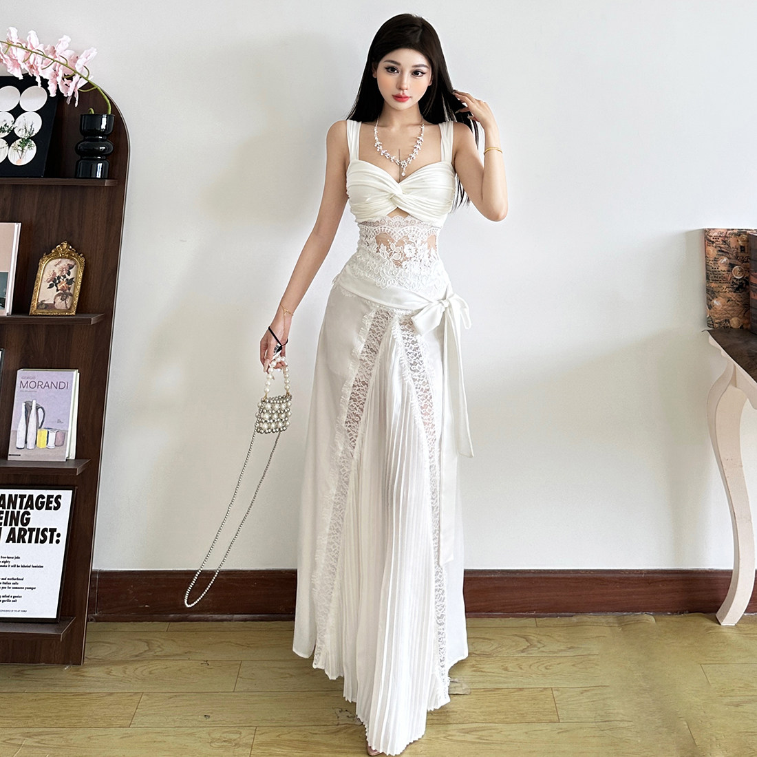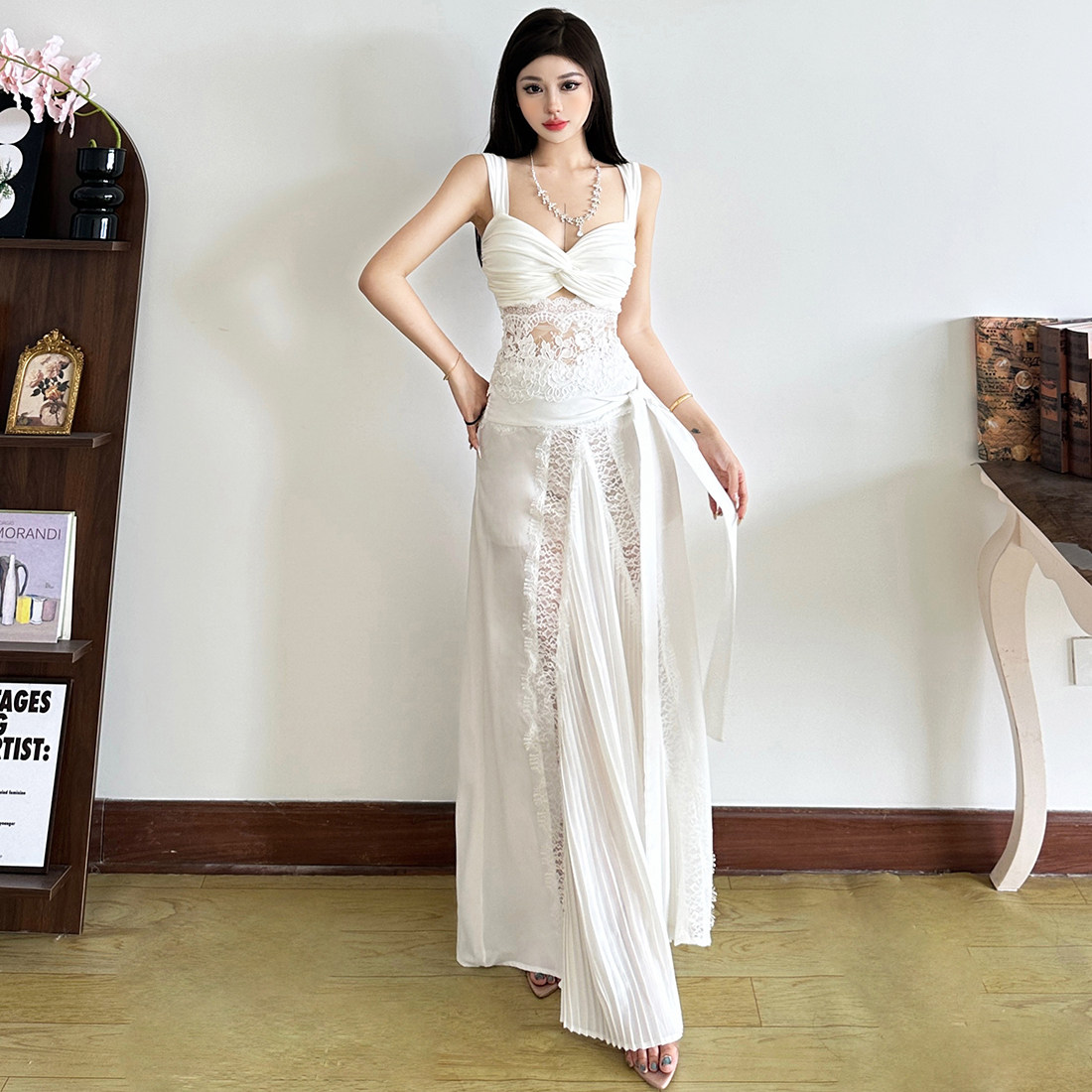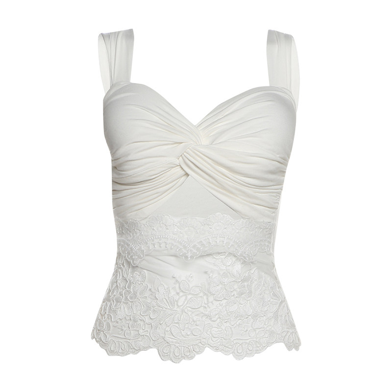 怪诞女孩 优雅气质蕾丝拼接扭结吊带背心蝴蝶结低腰不是两件套女