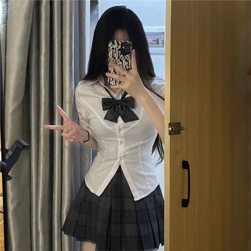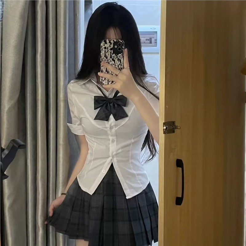 甜辣纯欲风衬衣女百搭学院风夏季 修身 jk原创制服套装 收腰衬衫