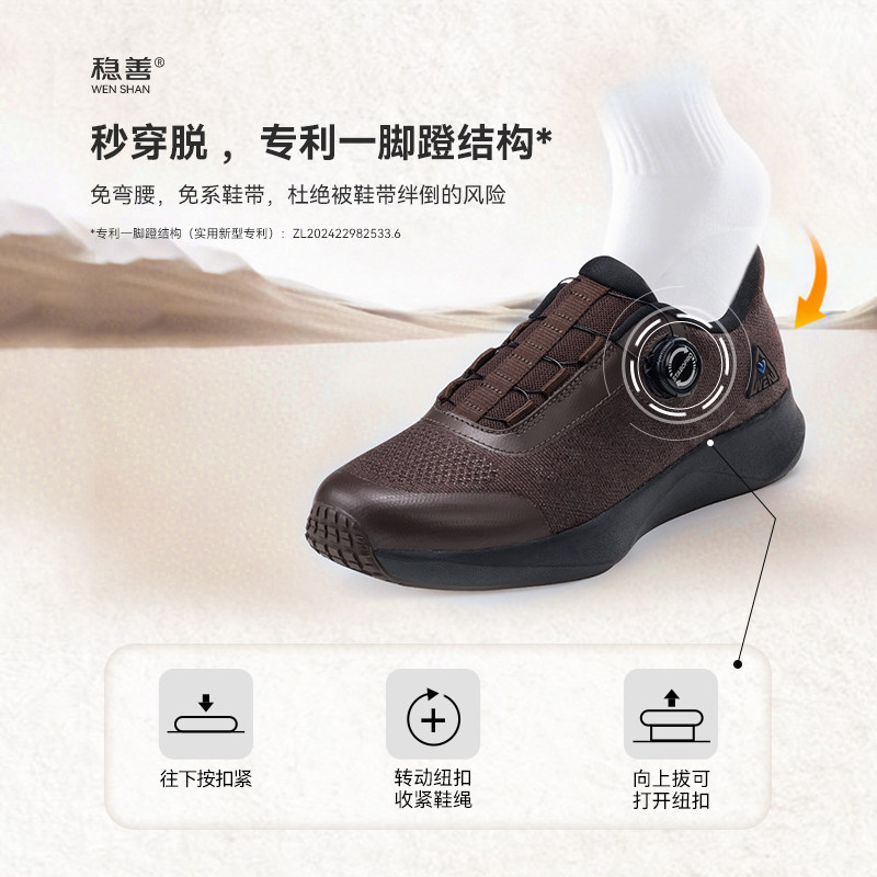 面 男女士防滑防崴缓震一脚蹬羊毛防泼水鞋 稳善秋冬季 老年人运动鞋