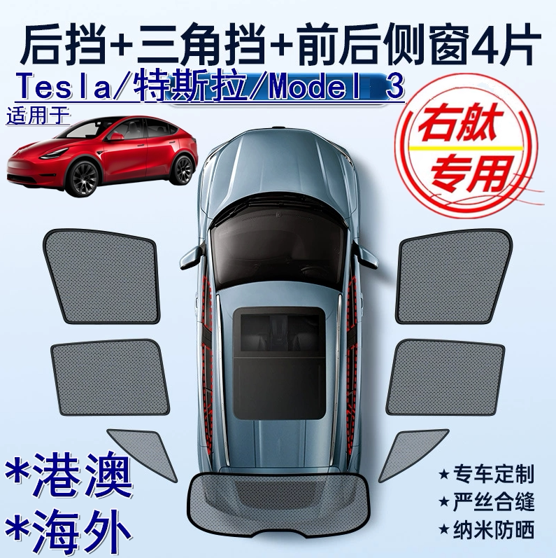 适用香港版 3遮阳帘右舵特斯拉Model3车窗网遮阳挡 Tesla右軚Model