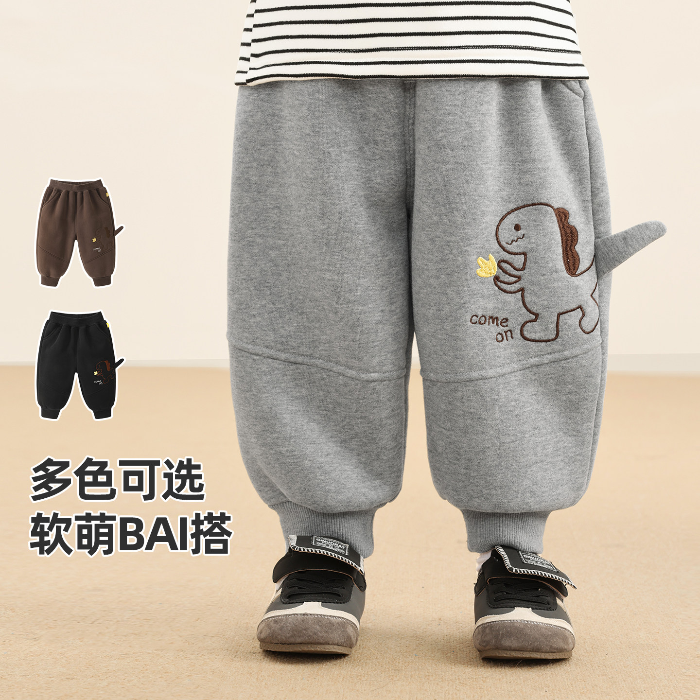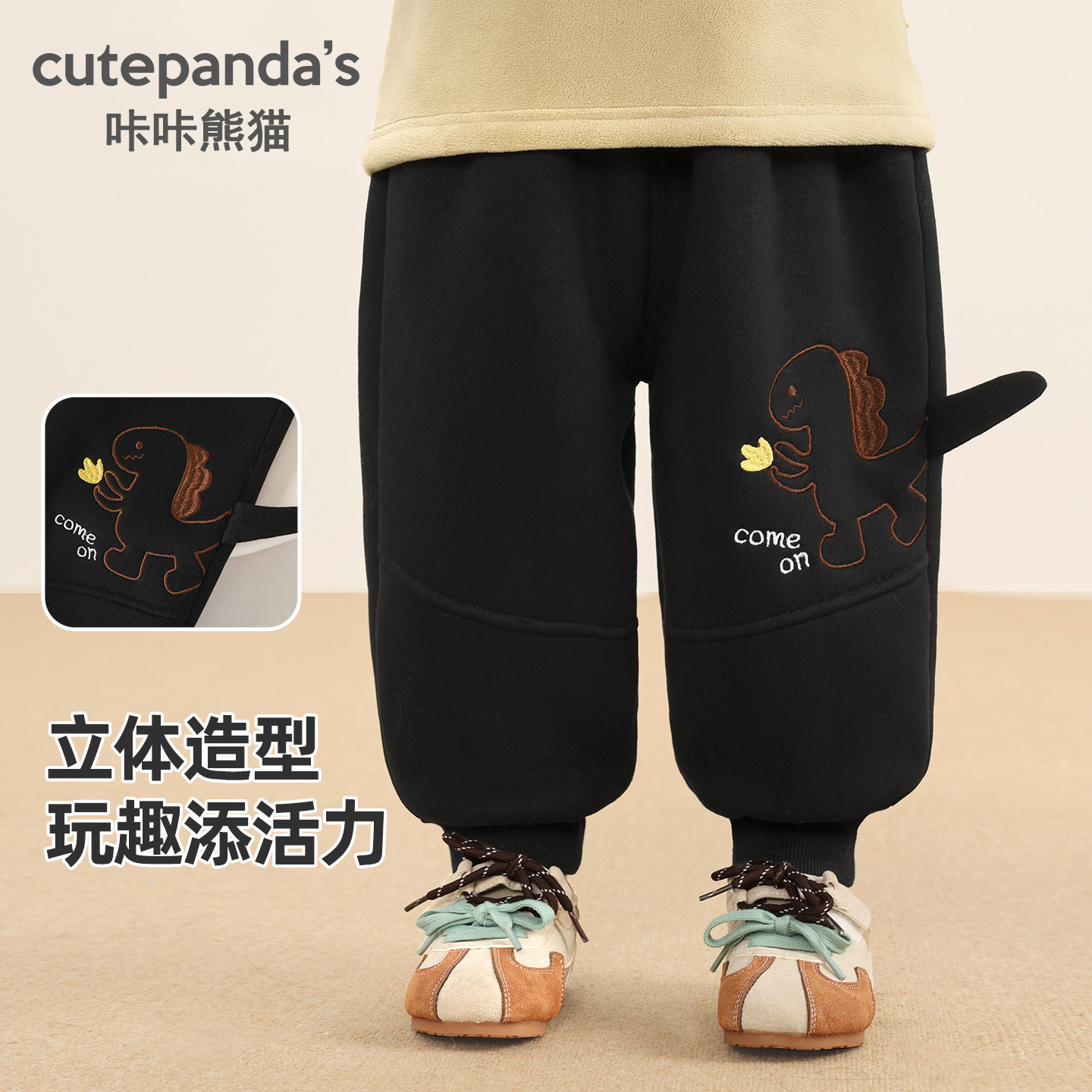 男童女童宝宝保暖长裤 咔咔熊猫儿童裤 卡通造型加厚卫裤 冬装 子冬季