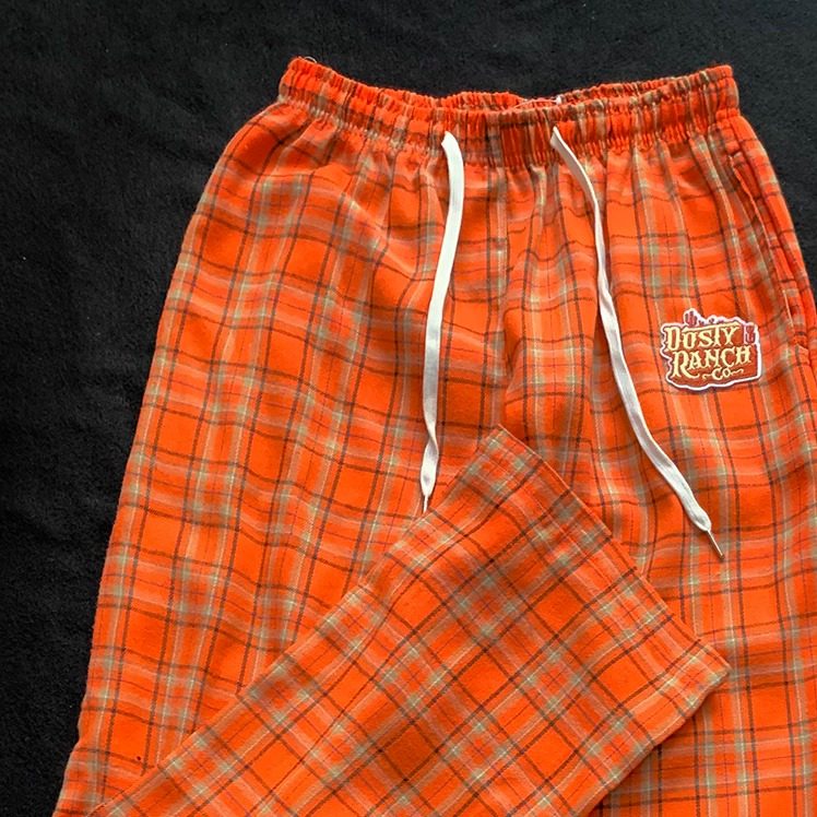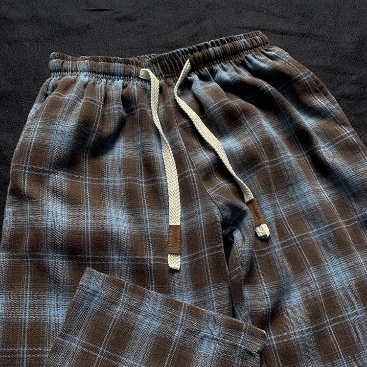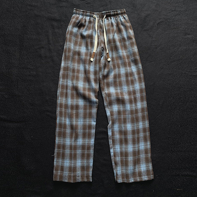 2026秋季 桔色阔腿裤 新款 子潮牌男格纹休闲长裤 女 男生裤 橙色格子裤