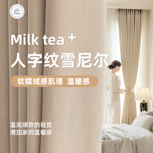 人字纹雪尼尔窗帘轻奢现代简约遮光卧室客厅高级感大气新款 布 法式