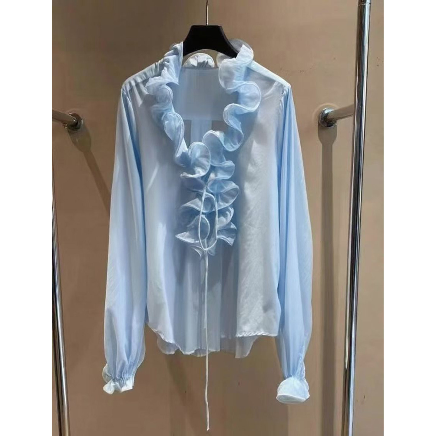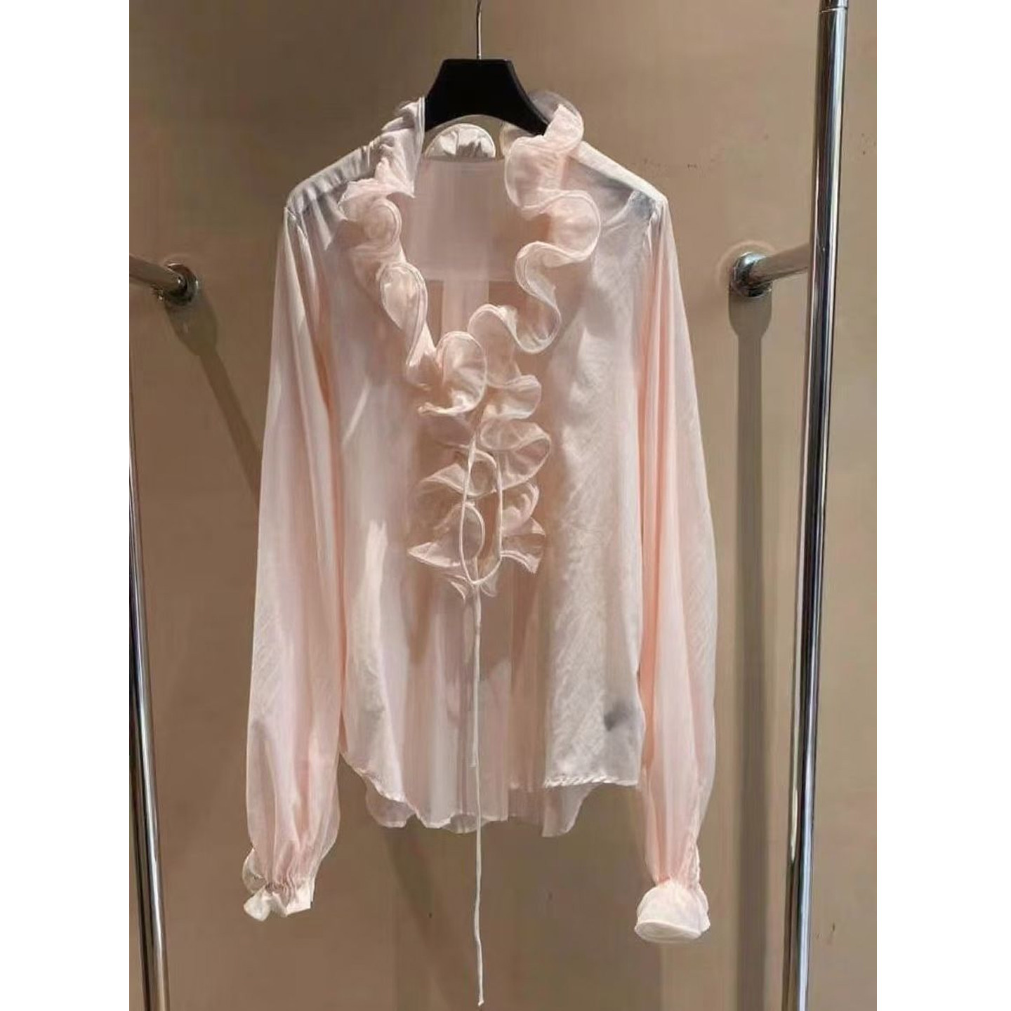 女 设计感小众别致独特白色荷叶边衬衫 法式 甜美风洋气减龄小衫