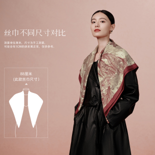 万事利真丝丝巾羊毛红色围巾女送妈妈桑蚕丝披肩锦鱼绘 生日礼物