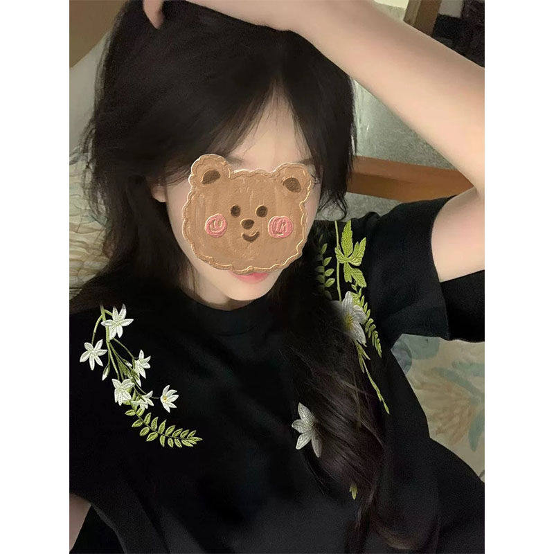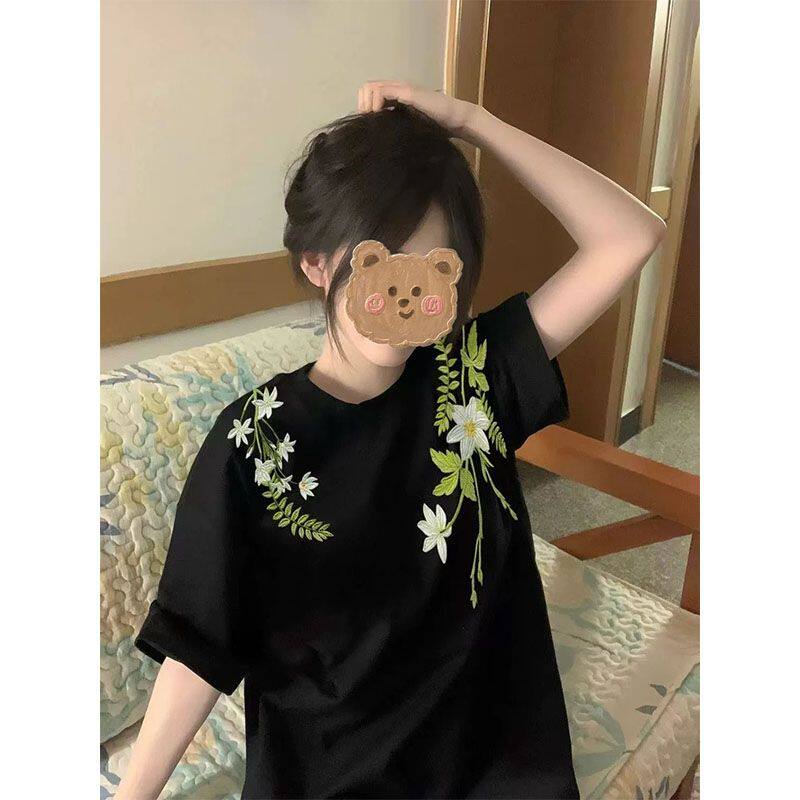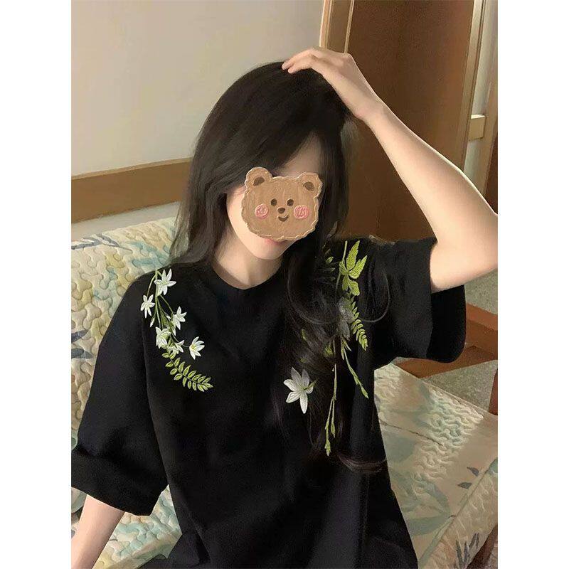 重磅高街宽松t恤男女上衣学生打底衫 美式 夏季 T恤衫 服 花卉印花短袖
