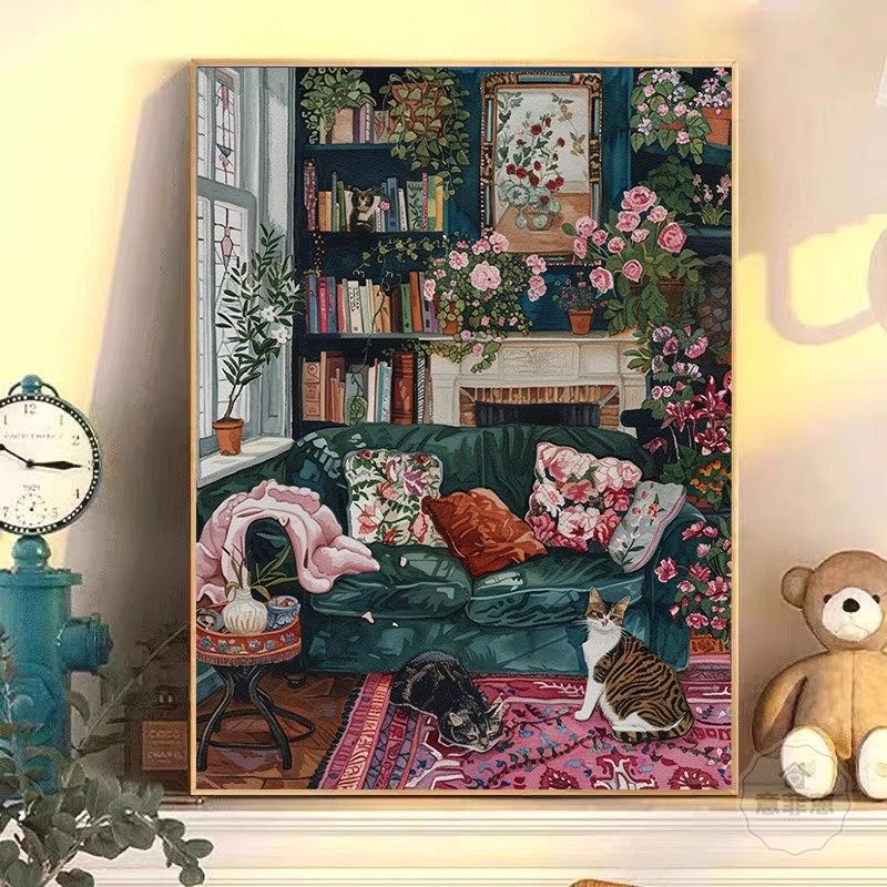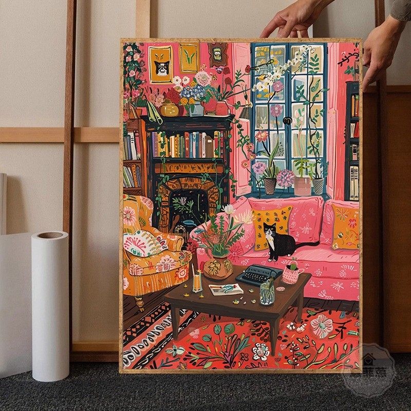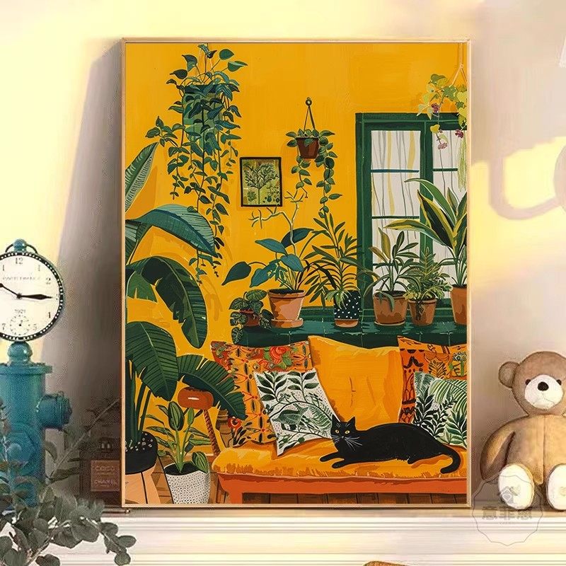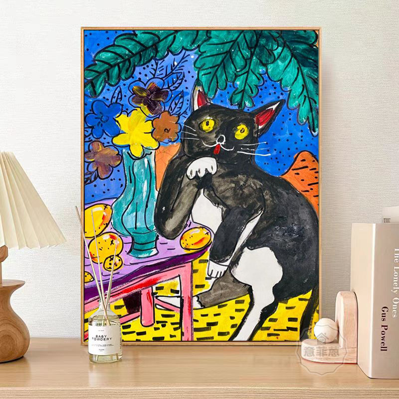 卧室挂摆画 风格 马蒂斯客厅装 饰画仿油画涂鸦猫咪抽象成品喷印美式