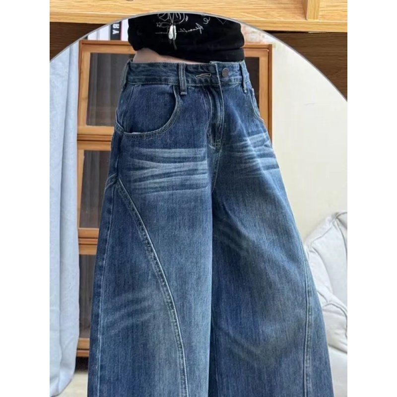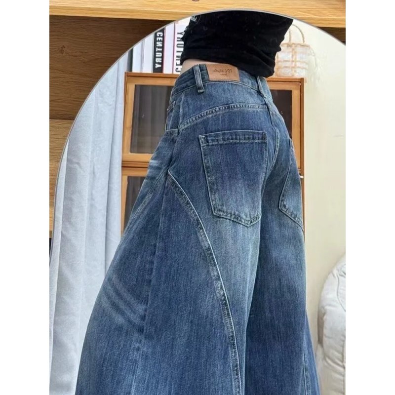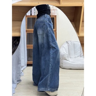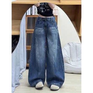 女高腰垂感显瘦百搭拖地裤 夏季 复古高街弯刀阔腿牛仔裤 美式 新款