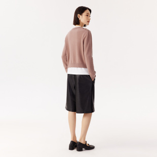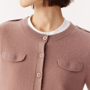 上衣女 圆领宽松精致粉红色多纽扣针织开衫 VGRASS秋冬新款 羊绒衫