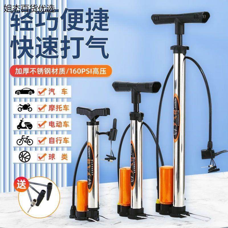 不锈钢高压打气筒自行车电动车家用摩托车通用充气篮球充气泵气管