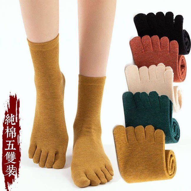 特价 五指袜女纯棉防臭女袜子中短筒袜春秋吸汗分脚趾袜纯色袜子