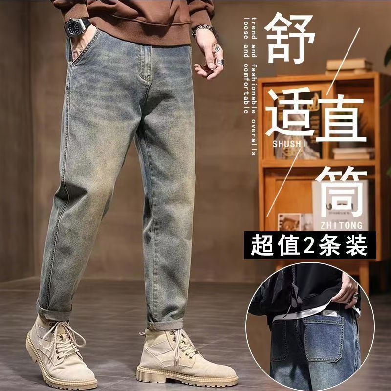 宽松直筒长裤 春秋款 2025新款 美式 子 男士 复古耐磨工作裤 休闲牛仔裤