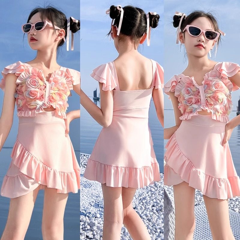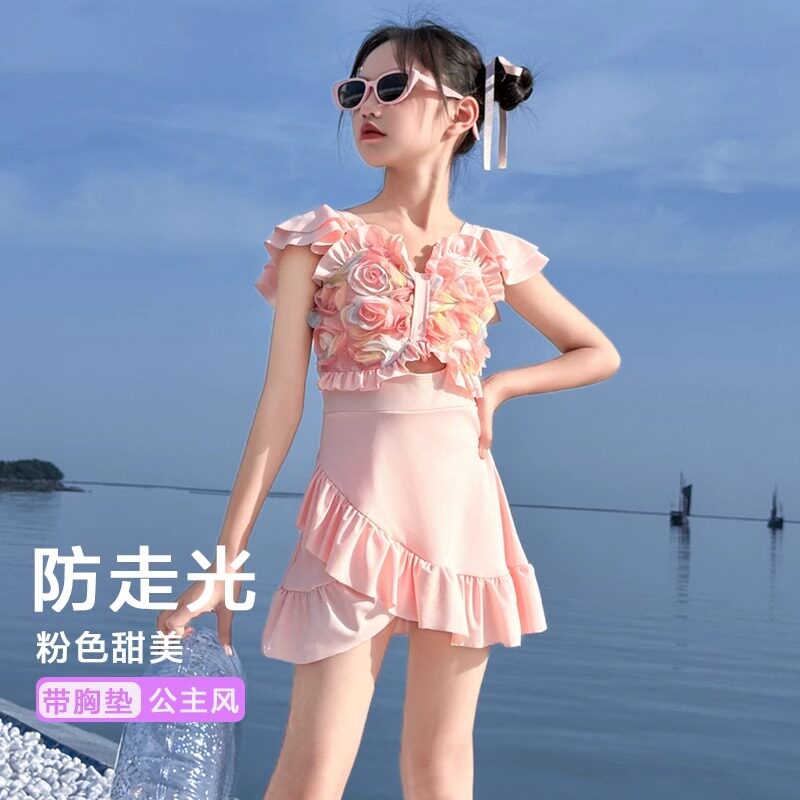 泳装 中大儿童游泳衣高颜值女孩连体裙式 洋气 新款 女童泳衣2025夏季