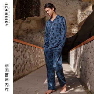 睡衣家居服套装 SCHIESSER舒雅铂雅男士 70S丝光纯棉双面布翻领大码