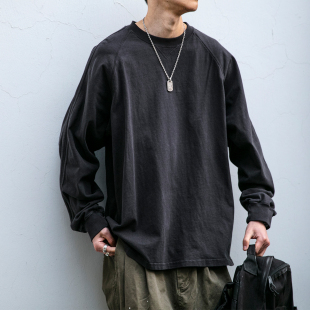 T恤男潮牌宽松简约水洗情侣圆领休闲打底衫 纯色长袖 春秋季 基础款