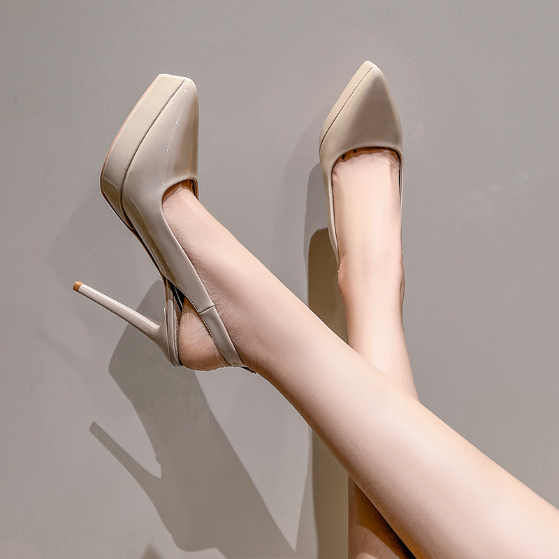 漆皮防水台细跟性感后空包头凉鞋 2025新款 小个子12cm尖头超高跟鞋