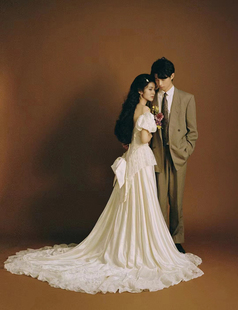缎面主婚纱2025新娘结婚抹胸高级感礼服拖尾订婚宴会一字肩婚纱瑰