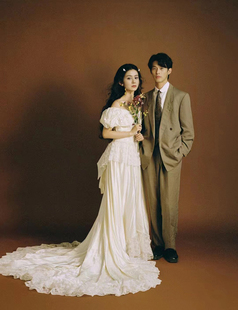 原创设计师品牌优雅法式 小拖尾新娘户外草坪旅拍轻婚纱 V领有袖