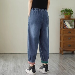 冬2026新款 爆款 中年妈妈裤 哈伦裤 宽松萝卜裤 女士秋季 子大码 牛仔裤