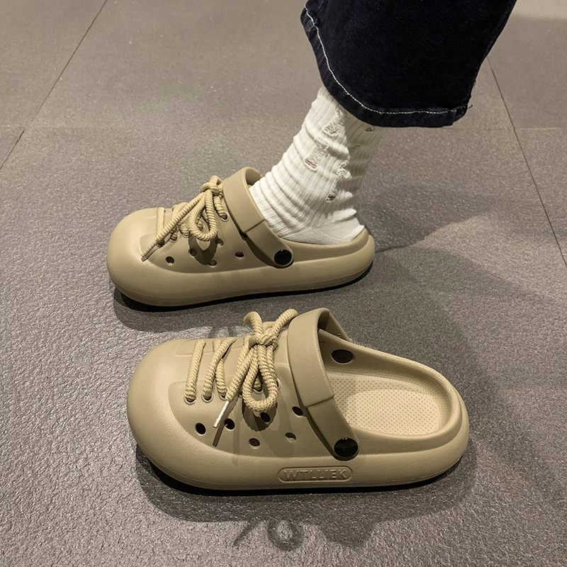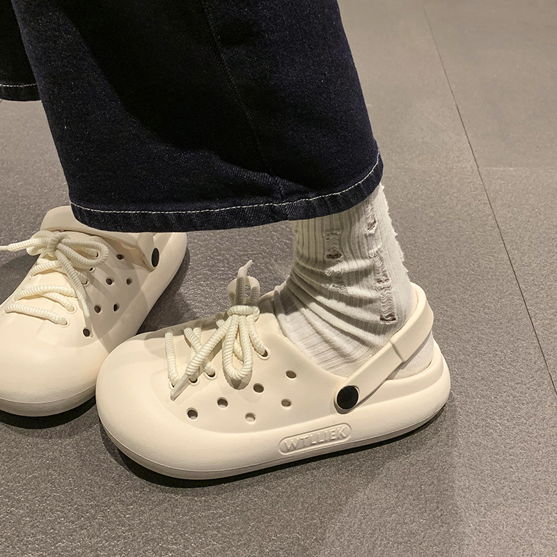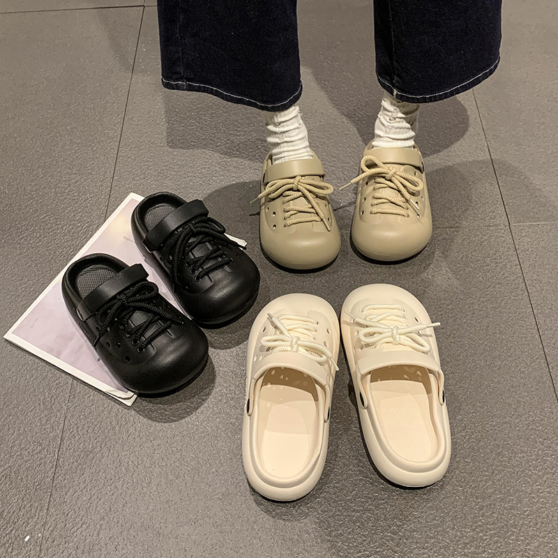 男 女ins可爱卡通夏情侣防滑厚底足弓凉拖沙滩鞋 细细条 护士洞洞鞋