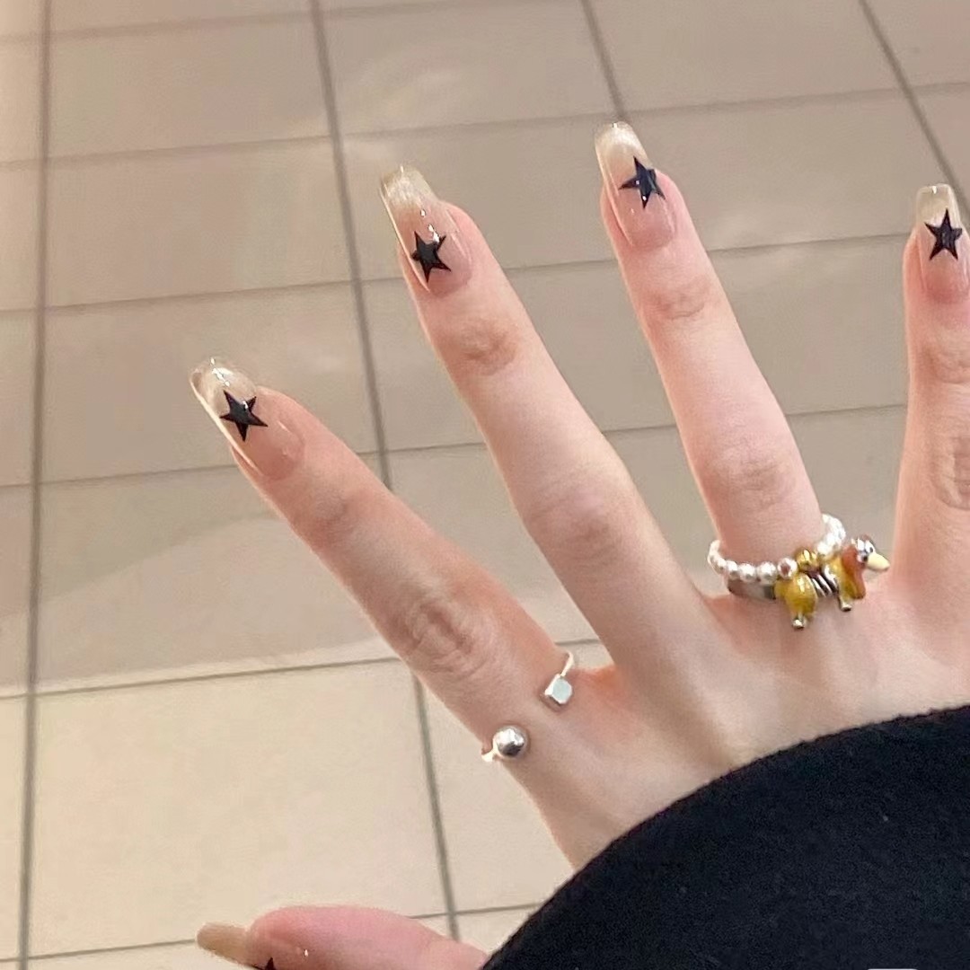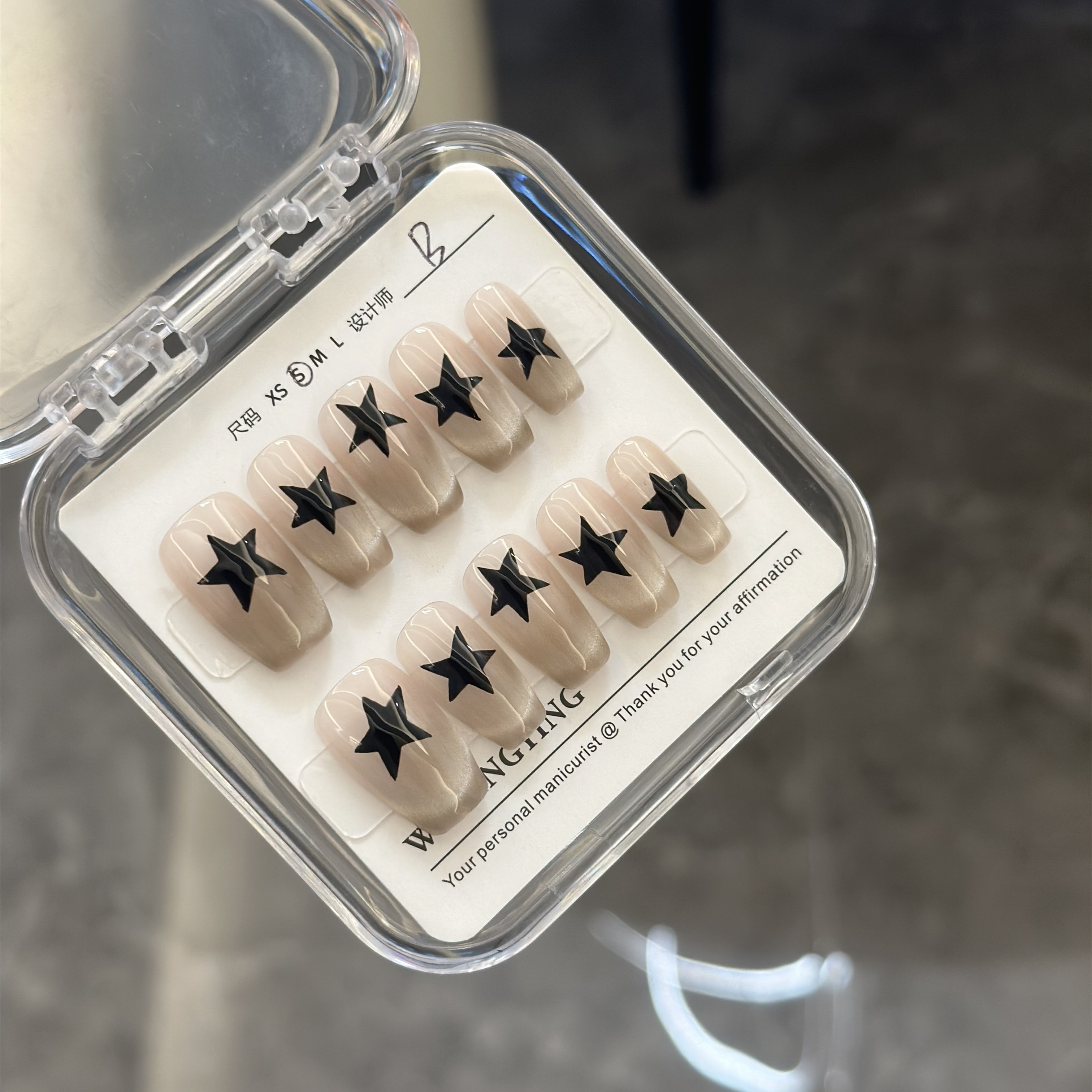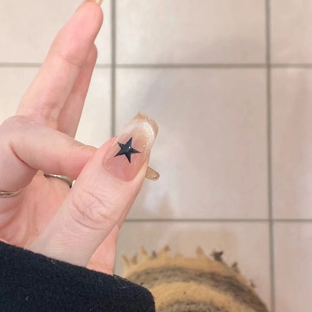 380纯手工定制穿戴甲甜酷猫眼星星美甲贴片显白孕妇假指甲可拆卸