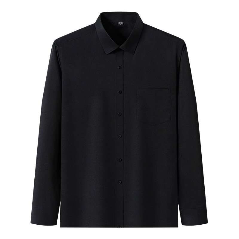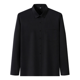 春秋款 保罗纯棉男士 黑色商务职业正装 衬衫 休闲全棉免烫黑衬衣 长袖