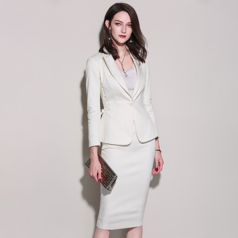 职业套裙女时尚 新款 气质女神范西装 修身 颈袖 职业套装 添香秋季